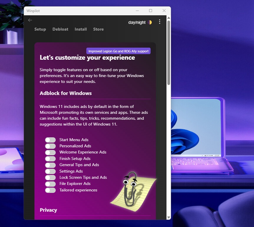 Winpilot, Windows 11’de gözüken tüm reklamları ortadan kaldırma konusunda etkili bir çözüm sunar. Başlat menüsü reklamları, özelleştirilmiş tanıtımlar, hoş geldiniz ekranları, kurulum sonrası beliren ilanlar, kullanıcı ipuçları ve tavsiyeler, Ayarlar’daki reklamlar, kilit ekranındaki bildirimler ve ipuçları gibi her türlü rahatsız edici reklamı Winpilot’un Adblock for Windows bölümüyle kolayca engelleyebilirsiniz. Winpilot’a eklenen yeni özellik olan Adblock for Windows, sadece Windows 11 kullanıcı arayüzündeki reklamları hedefler. Denemek isterseniz, GitHub sayfasından indirebilirsiniz.