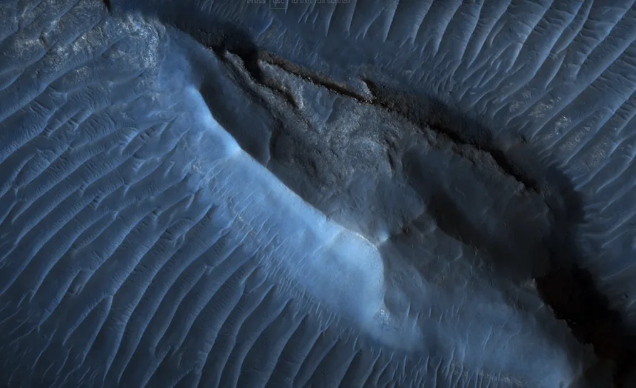 Yayınlanan videoda Mars’ın alışılagelmiş kızıl tonlarının görünmemesi ve mavinin baskınlığı gözleri önüne serilmiş. Bunun nedeni ise volkanik faaliyet dönemlerinde gezegende oluşan magmatik bir kaya olan bazaltın büyük miktarlarda bulunması.