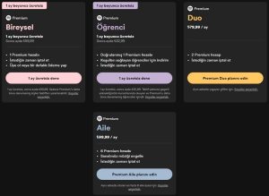 Spotify bireysel abonelik ücreti 59,99 TL’ye yükseldi. Öğrenci aboneliği 32,99 TL, Aile paketi 99,99 TL ve Duo üyelik ise 79,99 TL olarak belirlendi. Spotify, bireysel ve öğrenci paketleri için 1 ay boyunca ücretsiz, belirli aralıklarla ise 3 ay süreyle ücretsiz Premium abonelik fırsatı sunuyor.